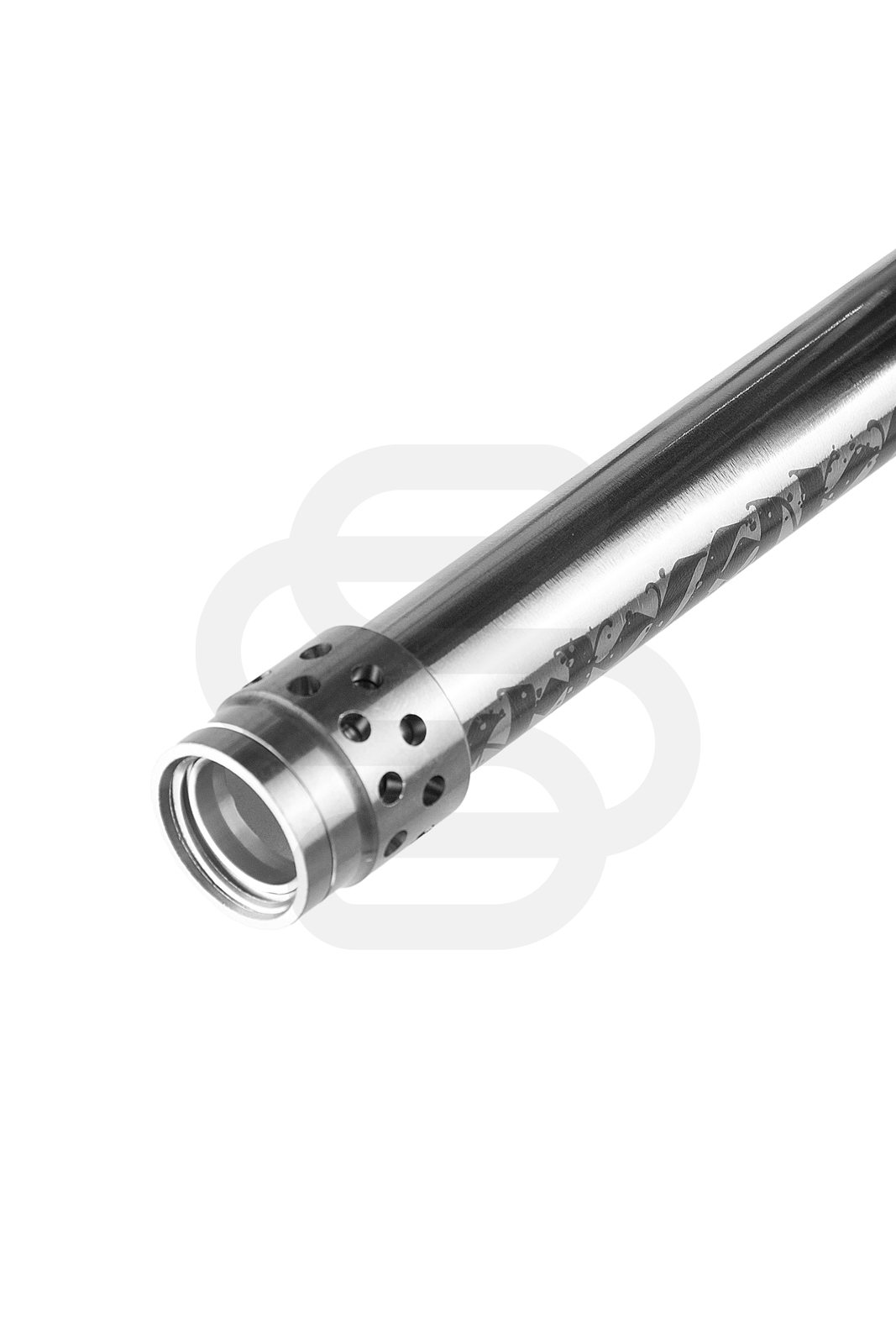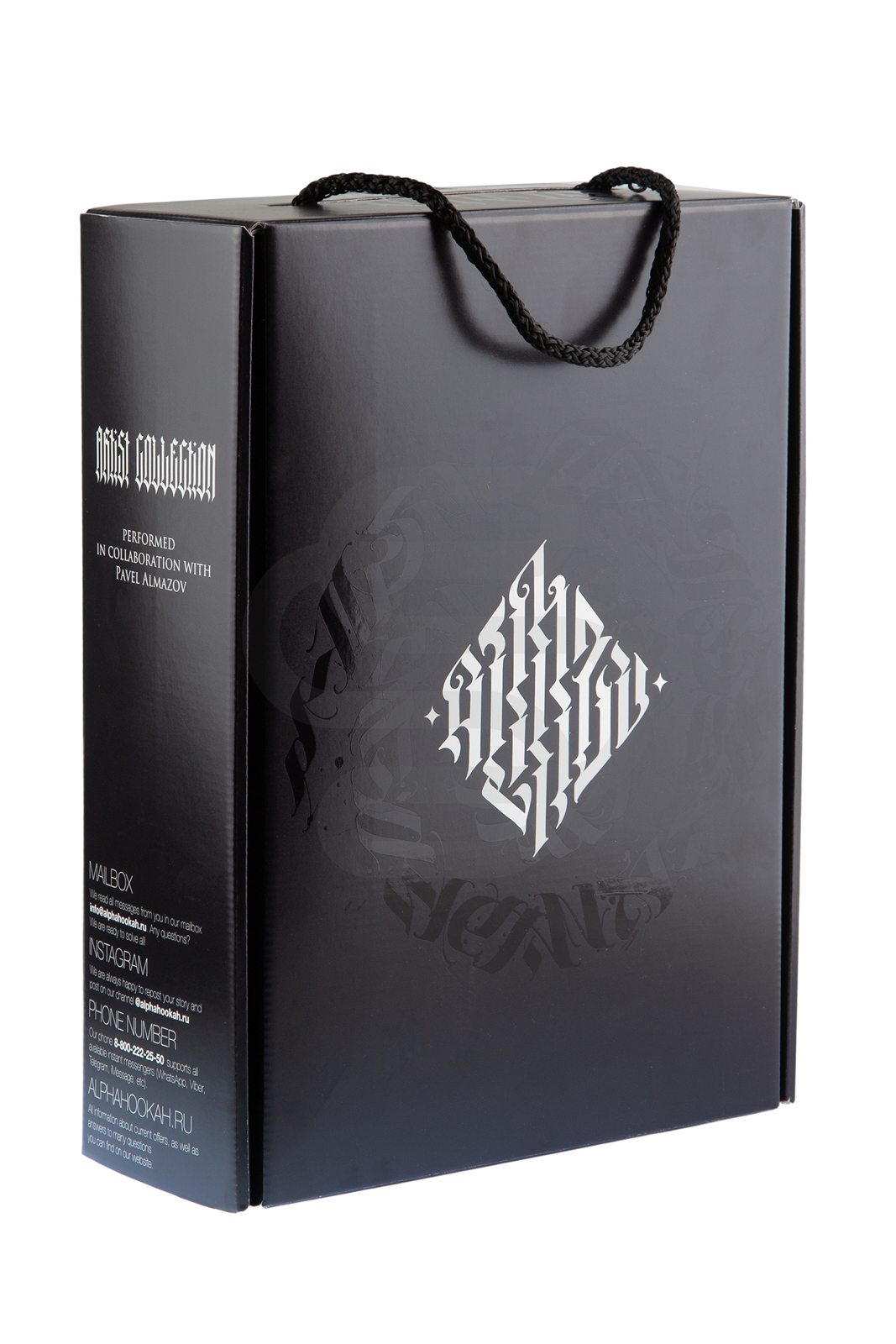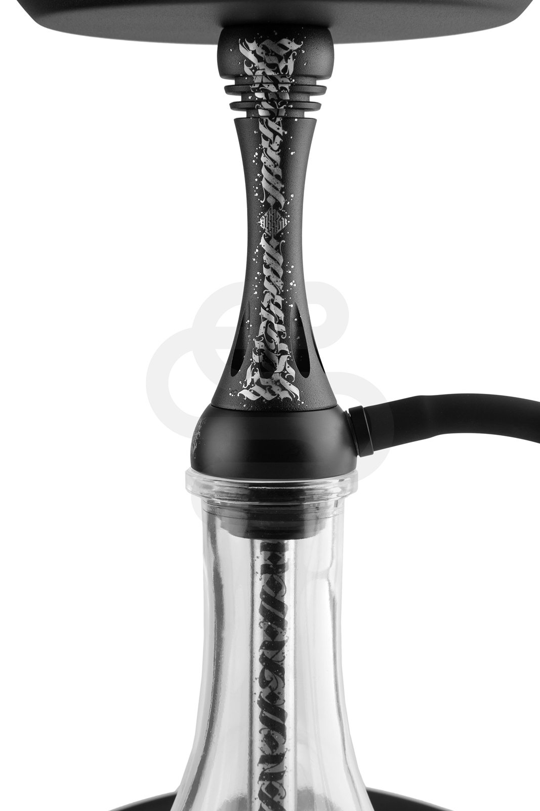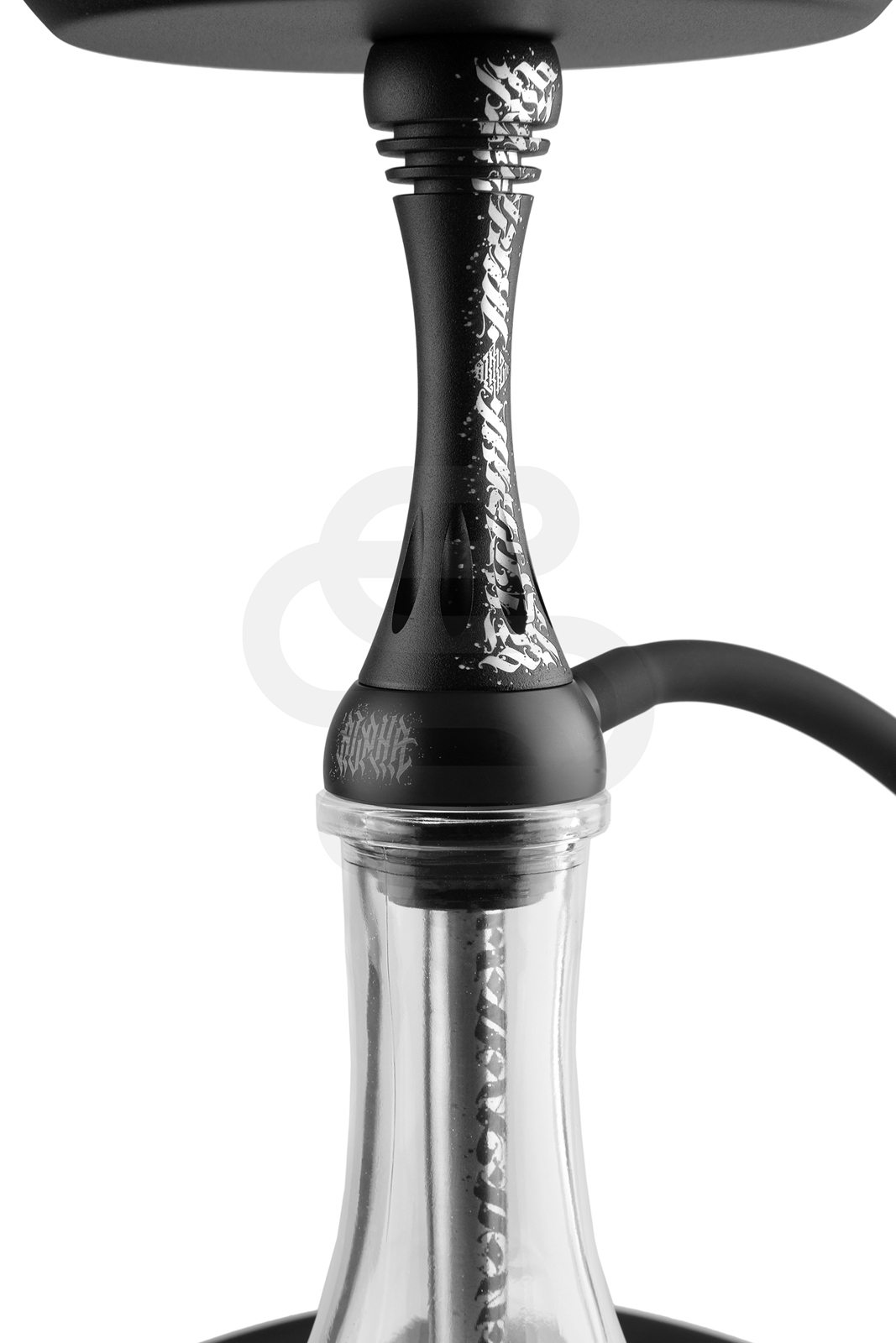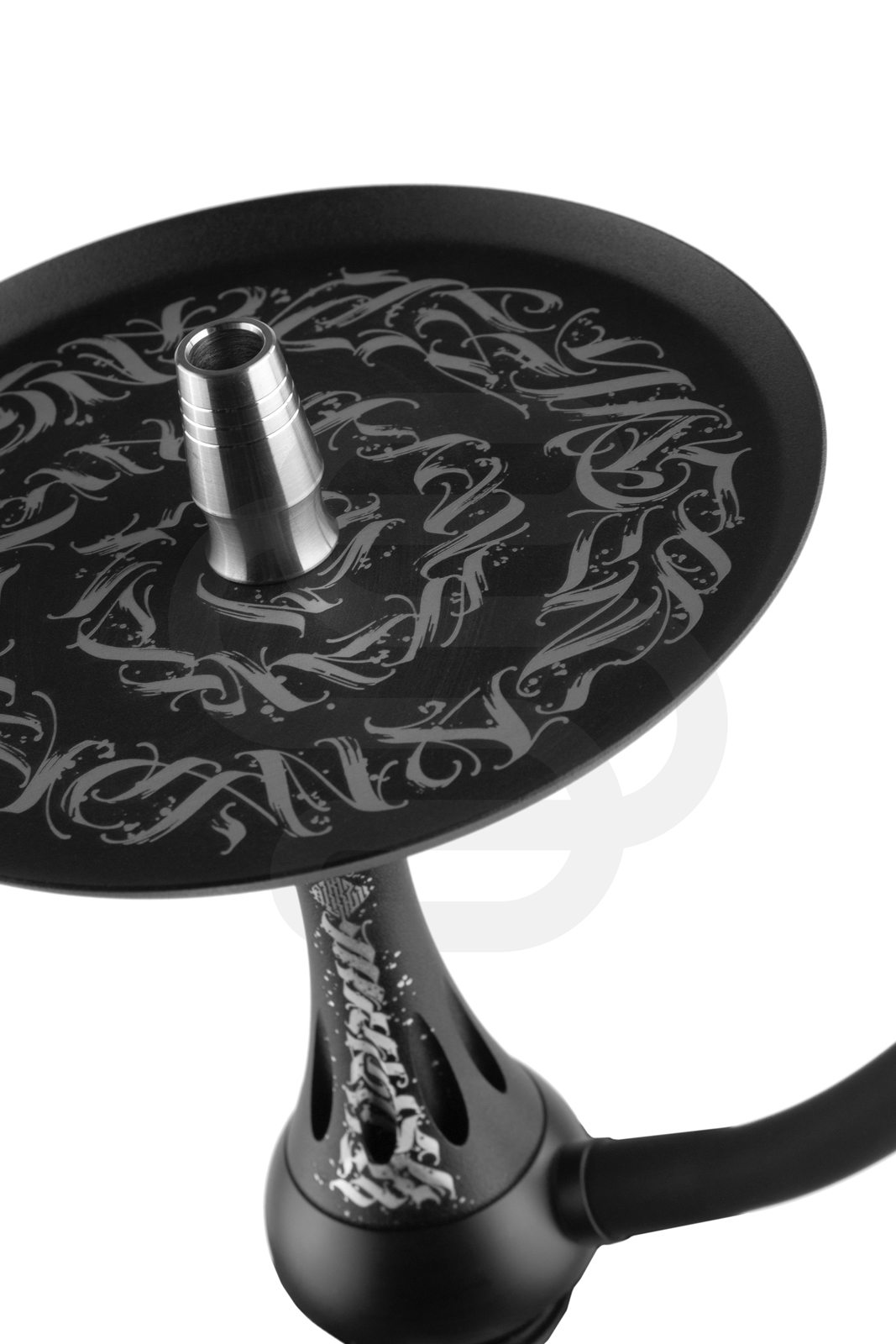 Кальян изготовлен из качественной нержавеющей стали AISI 304. Она надежна в применении, не боится коррозии и не поддается внешним воздействиям. Имеется стильная, дизайнерская накладка со вставкой из анодированного алюминия. Каллиграфический рисунок выполнен художником Павлом Алмазовым (Pavel Almazov).