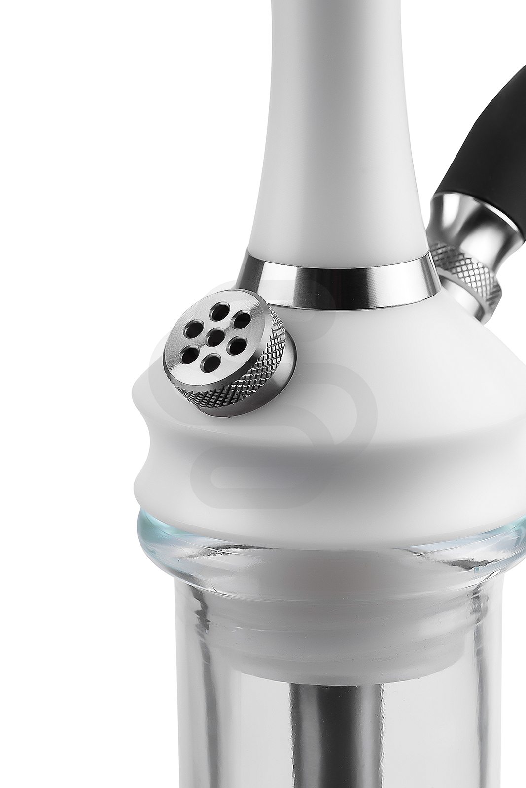 Еще одно новшество — регулируемый диффузор. Он имеет 12 отверстий, которые открываются полностью или наполовину, при вращении диффузора вокруг своей оси. Это даст вам легкую или среднюю тягу на выбор, а также уменьшит «булькающий» звук, появляющийся при курении кальяна.