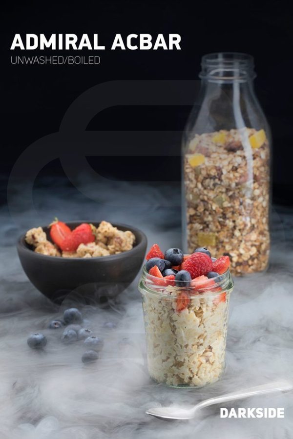DarkSide Admiral Acbar Cereal (Овсяная каша) – сладкий и сливочный вкус настоящей геркулесовой каши. В чистом виде аромат «овсянки» понравится не всем кальянщикам, но во многие миксы Admiral Acbar Cereal добавит необычный акцент. В смесях овсяные хлопья прекрасно сочетаются с ягодами и фруктами, пряностями, десертными и чайными табаками. Особенно приятным послевкусием обладают миксы «овсянки» с малиной, корицей и яблоком.