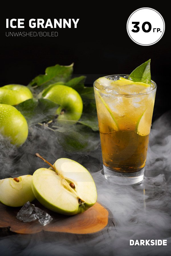 Darkside Core Ice Granny (Зеленое яблоко,ментол) — яркий микс для жарко, солнечного дня. Кисленькое яблоко со сладким послевкусием и бодрящим холодком. Классический вкус, который точно придется по вкусу всем любителям фруктовых табаков. Вкус круто сочетается с коктейльными и десертными вкусами.