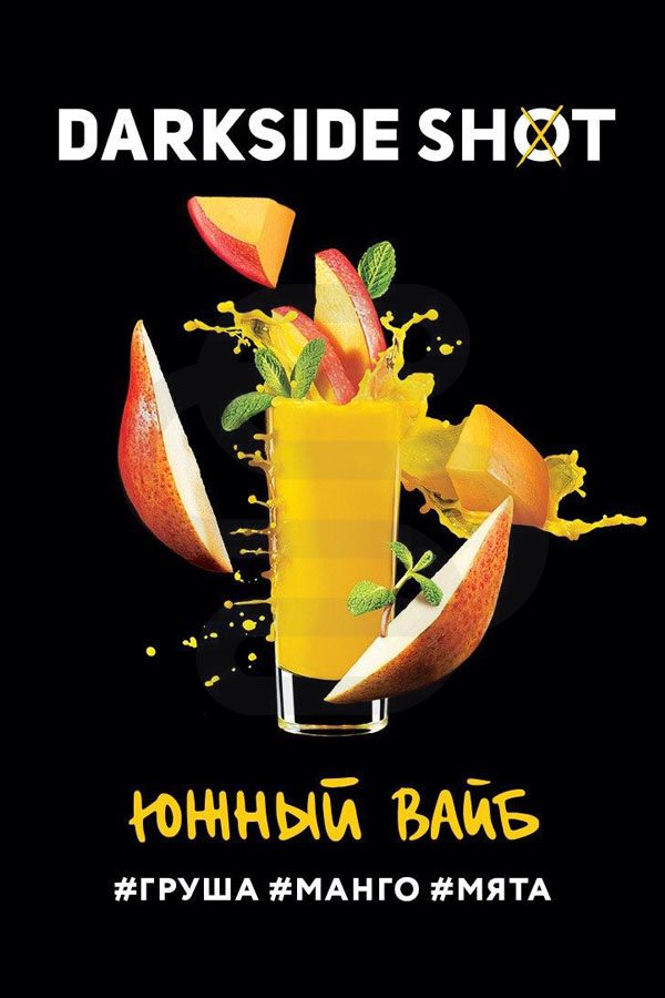Darkside Shot Южный вайб (Груша,Манго,Мята) — сочный микс сладкой груши, кислого манго и мяты.