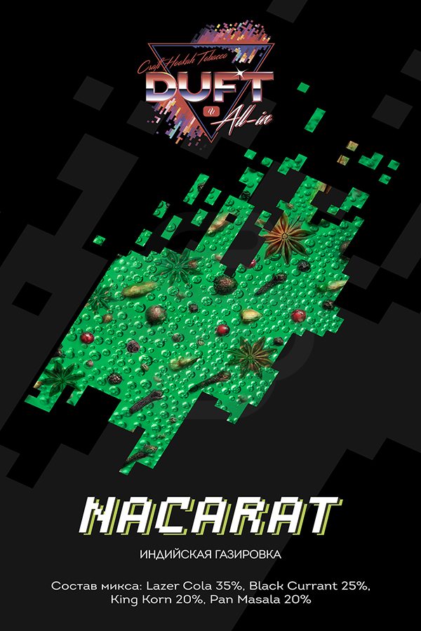 Duft All In Nacarat (Индийская Газировка) – этот вкус скоре подойдет тем, кто ищет и хочет попробовать все новое и неизведанное. Необычный, многогранный микс, который заслуживает внимания к себе. Кока-кола, смородина, пан масала и поп-корн, где вы еще такое попробуете в одной забивке?