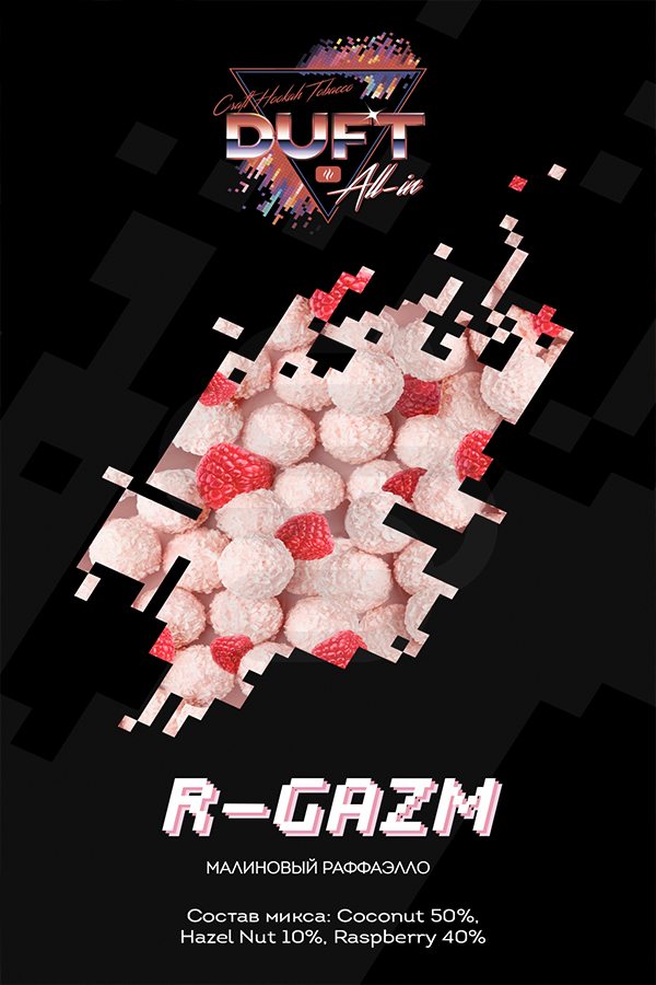 Duft All In R-Gazm (Кокосовые конфеты с малиной) – нежный вкус кисло-сладких конфет Раффаэлло с малиновыми нотками.