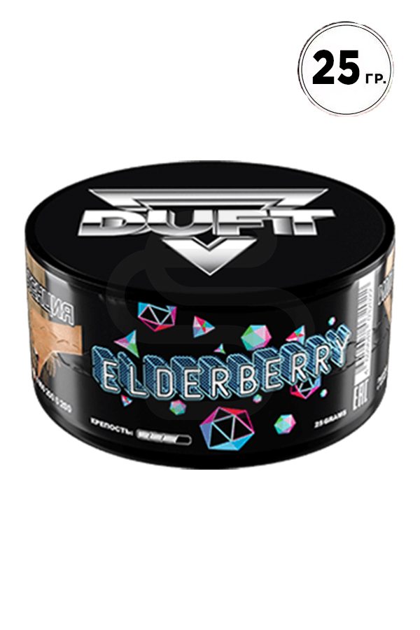 Duft Elderberry (Бузина) – необычный вкус чувственной, притягательной бузины с легкими, едва уловимыми мускатными нотками на выдохе. Бузина чем-то напоминает по вкусу чернику, нос более травянистыми и ореховыми нотками. Вкус интересно миксуется с фруктовыми и ягодными табаками.