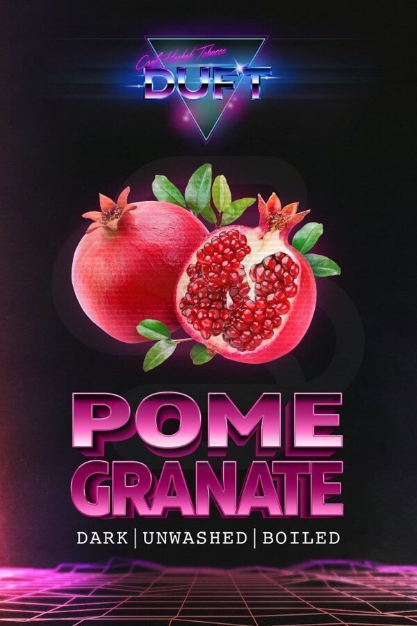 Duft Pomegranate (Гранат) – не яркий, освежающий, терпкий и немного вяжущий аромат, обладает четко выраженной кислинкой. Вкус не насыщенный и в сольном варианте напоминает разбавленный гранатовый сок. Pomegranate от Duft – достаточно крепкий табак и наилучшим образом проявляет себя в кальянных композициях с более легкими смесями, а также с несладкими фруктово-ягодными муасселями. В частности, прекрасно сочетается с грейпфрутом и вишней, виноградом и лимоном, киви и бананом, лесными ягодами и охлаждающими смесями. Гармонирует с некоторыми табачными «напитками».