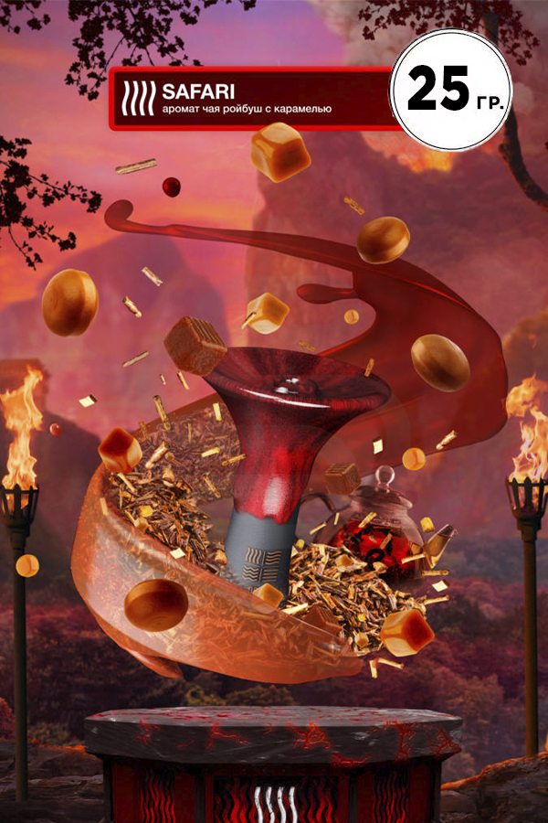 Element Огонь Safari (Чай Ройбуш с карамелью) – необычный вкус знаменитого южно-африканского чая Ройбуш с насыщенными сливочными нотками карамели. Нежный аромат вмиг вскружит вам голову и перенесет в мир блаженства и наслаждения. Этот вкус круто миксуется с ягодными и фруктовыми табаками.