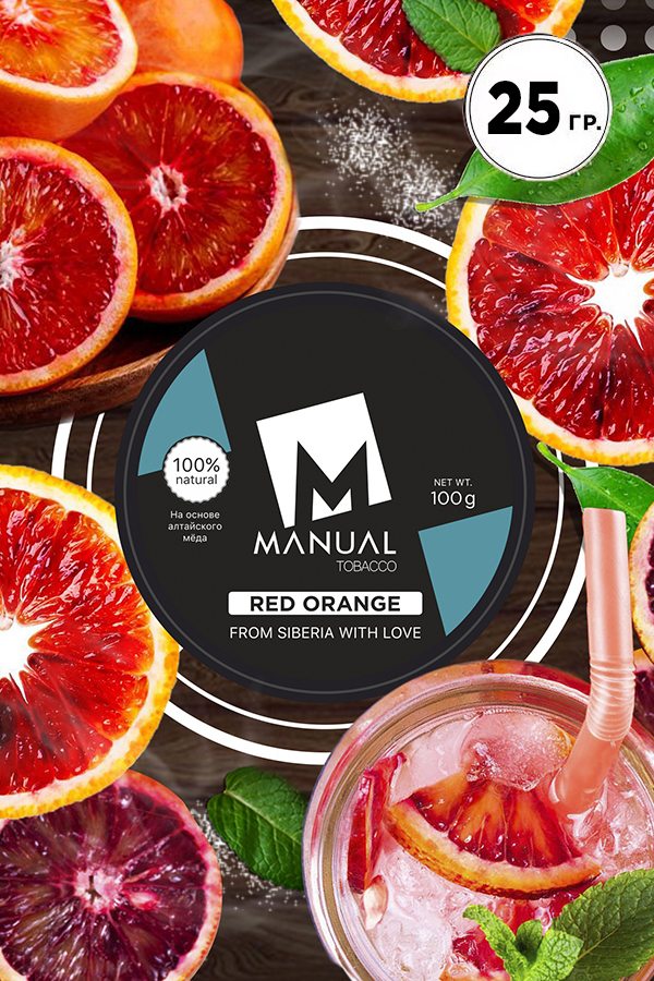 Manual Blue — RED ORANGE (Красный апельсин) — необычный вкус сочного красного апельсина полного насыщенной кислинки, легкой, но безумно вкусной сладости и едва уловимых горьковатых ноток цедры цитруса. Вкус стоит попробовать как в соло забивке, так и в различных миксах.