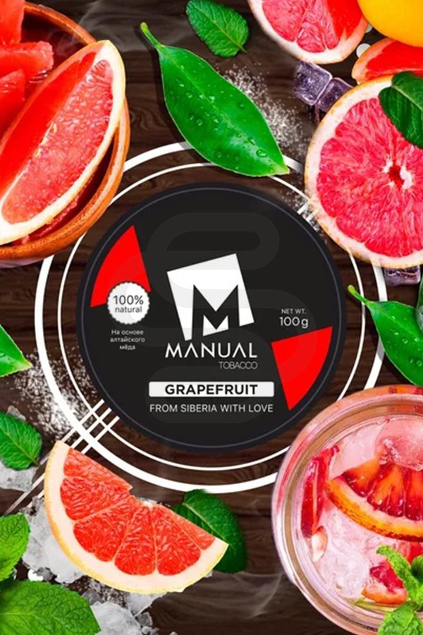 Manual Red — GRAPEFRUIT (Грейпфрут) — сочный, спелый, так и манит своей бодрящей кислинкой и пьянящим ароматом. Любители цитрусовых точно останутся в восторге от натуральности вкуса. Насыщенный грейпфрут внесет в ваш отдых новые, незабываемые краски. Он интересно раскрывается в миксе с другими цитрусовыми, а также десертными табаками.