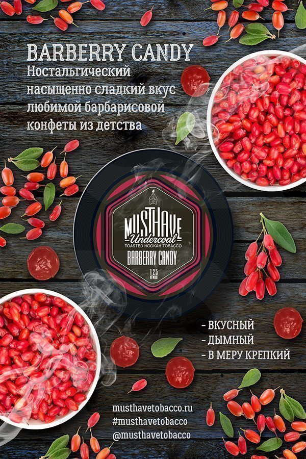 Must Have Barberry Candy (Барбарисовые Леденцы) – все мы в детстве получали по макушке от родителей за то, что ели конфеты перед обедом. Но как же устоять? Там же были барбарисовые конфеты. Теперь можно наслаждаться любимым вкусом детства, благодаря ребятам из команды Must Have. Вкус получился именно такой, к какому мы все привыкли, сладкий и немного приторный. Этот табак обязательно должен быть в закромах настоящих сладкоежек.