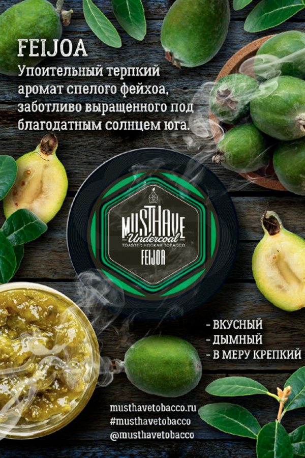 Must Have Feijoa (Фейхоа) – насыщенный вкус спелого плода фейхоа, выраженного под жарким солнцем. На вдохе вы ощутите приятную сладость фрукта, а на выдохе всю его терпкость. Нестандартное и очень инетерсное послевкусие покорит любого. Вкус круто заходит в любой гастрономический микс.