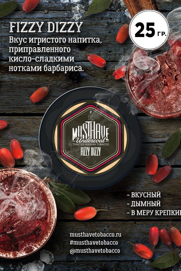 Must Have Fizzy Dizzy (Шампанское и барбарис) – аромат настоящего праздника и веселья с пьянящими нотками на фоне. Игристое шампанское с притягательным кисло-сладким послевкусием и яркие кисленькие нотки барбариса. Этот вкус стоит попробовать хотя бы раз в жизни! Он отлично курится соло.