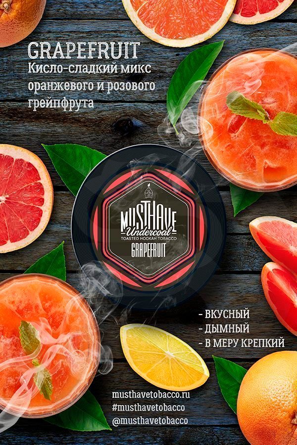 Must Have — Undercoal Grapefruit (Грейпфрут) – яркий и освежающий вкус спелого грейпфрута с лёгкой терпкостью и цитрусовой свежестью. Отличная дымность и насыщенная вкусопередача делают курение бодрящим и ароматным.