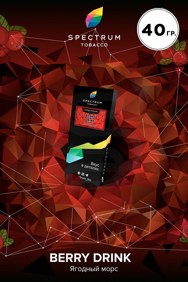Spectrum Hard Berry Drink (Ягодный напиток) — насыщенный аромат домашнего бабушкиного морса из лесных ягод. Приятная сладость земляники, малины и освежающая кислинка смородины, ежевики сошлись в этом вкусе, чтобы доставить вам максимум удовольствия от покура. Вкус хорош как соло, так и в миксах.