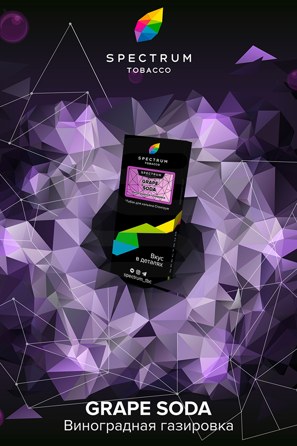 Spectrum Hard Grape Soda (Виноградная газировка) — вкус шипучей, кисло-сладкой виноградной газировки.