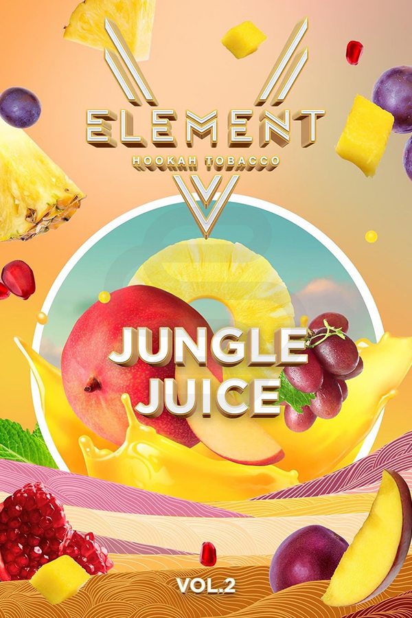 V Element Jungle Juice (Тропические фрукты, виноград, гранат) – сочный тропический микс с нотками терпкого гранат и винограда.