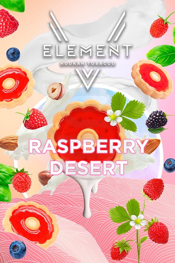 V Element Raspberry Desert (Малиновый десерт) – один из лучших и наивкуснейших десертных миксов от Element! Нежный малиново-ореховый бисквит с тонкими пряным послевкусием на выдохе и  освежающая, травянистая нотка сошного базилика. Сбалансированный микс, который удивит вас своей многогранностью с первого же вдоха!